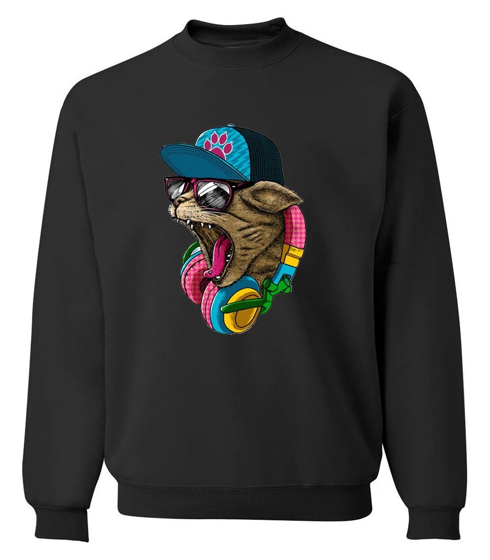 شراءمعلومات اضافية 3D المطبوعة مجنون DJ القط مضحك بلوزات الرجال أزياء العلامة التجارية هوديس 2019 الربيع الشتاء الصوف الحيوان طباعة رياضية للكبار